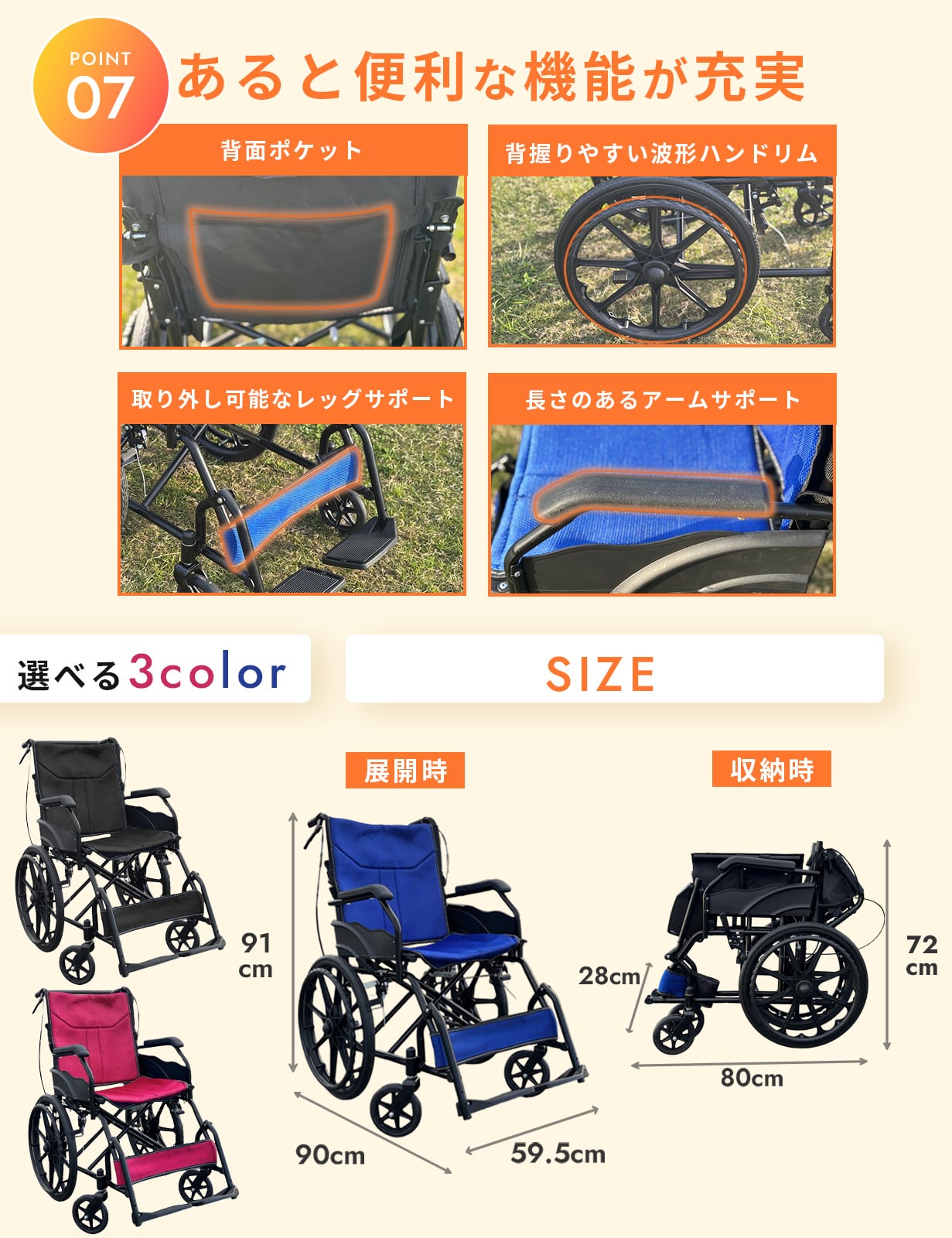 ✅️【折りたたみ・跳ね上げ式でコンパクト収納】折りたたみ式に加え、フットレストが跳ね上げ可能なため、よりコンパクトに収納できます。軽自動車にも積みやすい省スペース設計で、通院・旅行・外出など幅広いシーンに便利。折りたたみ車椅子を検討されている方にぴったりです。